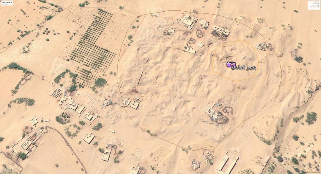 ومن خلال تتبع صور الأقمار الصناعية للمنطقة المفترضة، ووفقًا لتأكيد الدكتور الحاج، فإن موقع المعبد في الجهة الغربية من منطقة هجر العادي. وتوصل معد التحقيق إلى أن حفريات في 2009 تسببت بإزالة أجزاء بارزة من بقايا المعبد، كانت تظهر واضحة في صور الأقمر الصناعية عام 2002.